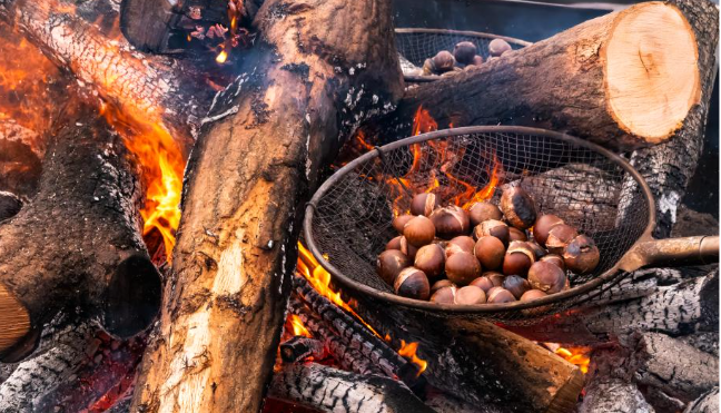 - 대형 화로 군밤 굽기 체험: 축제의 백미! 지름 2m급 대형 화로에서 긴 뜰채를 이용해 직접 알밤을 구워 먹는 이색 체험입니다. 타닥타닥 밤 익는 소리와 함께 잊지 못할 추억을 만들어보세요.