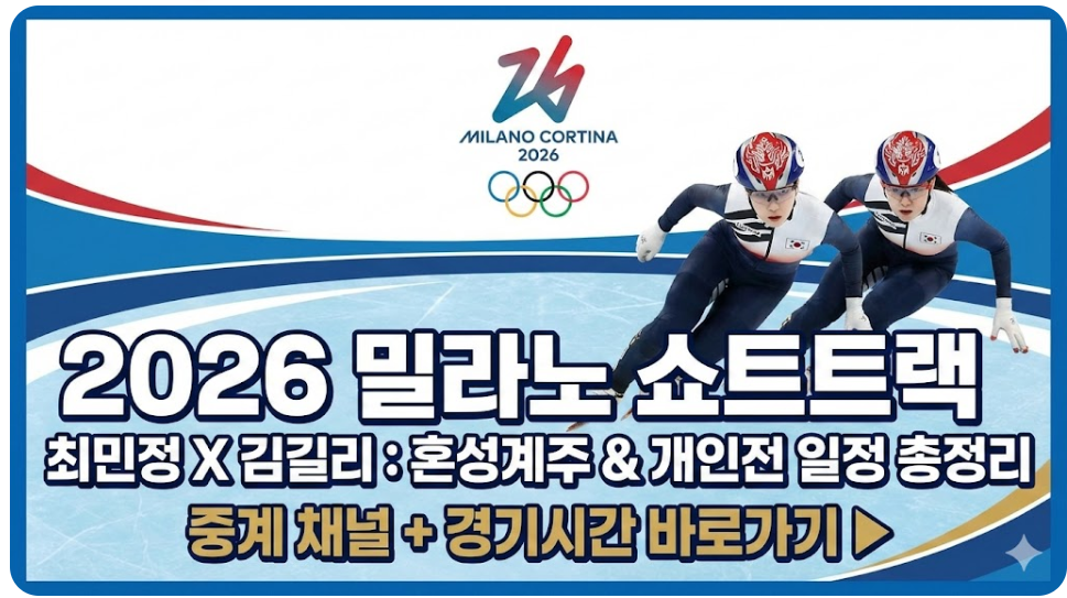 안녕하세요! 오늘은 전 국민의 시선이 집중된 2026 밀라노 동계 올림픽 쇼트트랙 일정과 우리 선수들의 활약상을 정리해 드립니다. 방금 끝난 최민정 김길리 혼성계주 결과에 대한 아쉬움도 크지만, 이제 시작일 뿐입니다. 남은 최민정 김길리 쇼트트랙 일정과 금메달 사냥을 위한 개인전 경기 시간, 그리고 실시간으로 시청 가능한 쇼트트랙 중계 채널까지 한눈에 확인해 보세요.